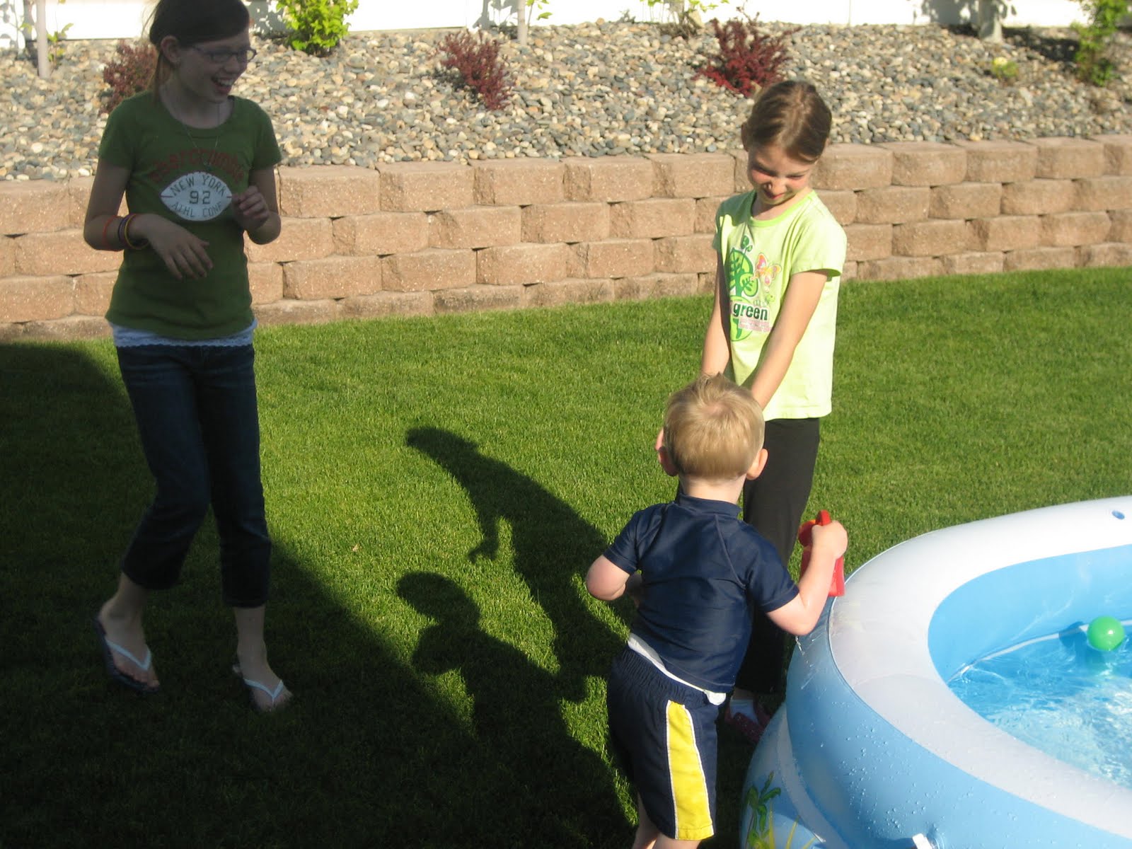 Trying to get Elizabeth and Abigail wet with the watering can they got me.